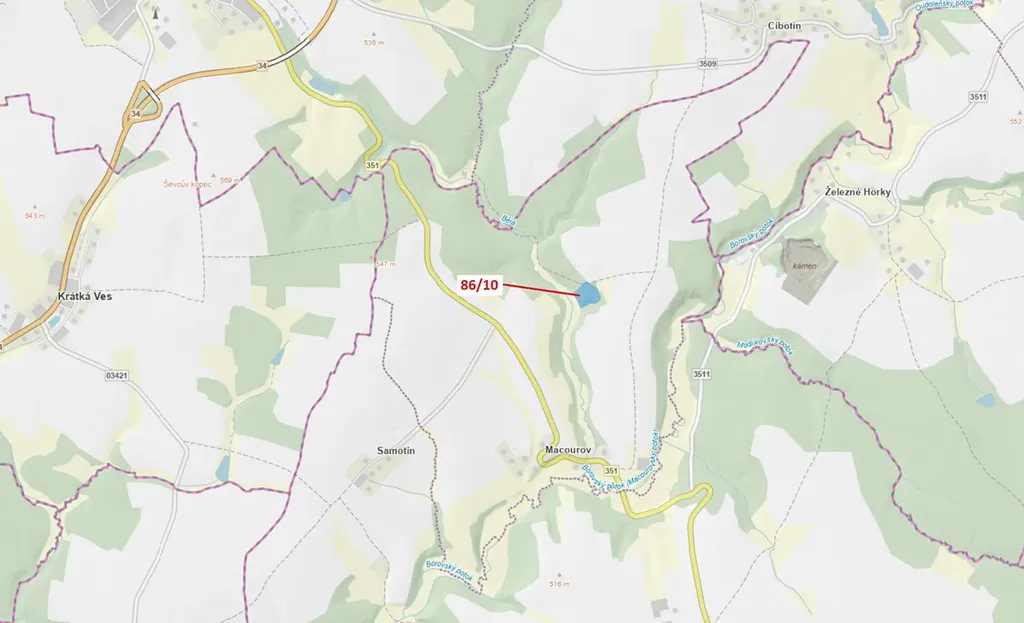Lesní pozemek o výměře 12 727 m2, parcelní číslo 86/10, podíl 1/1, katastrální území Macourov, obec Žižkovo Pole, obec s rozšířenou působností Havlíčkův Brod, okres Havlíčkův Brod, Kraj Vysočina.