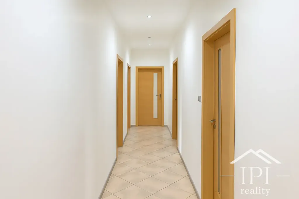 Technické zázemí tvoří prostorná dvojgaráž s přímým vstupem do domu, což je velkou výhodou zejména v nepříznivém počasí. Dále je zde technická místnost, sklad, šatna a široká chodba s dostatkem úložných prostor. Dům je vybaven dvou zónovým zabezpečovacím systémem.
