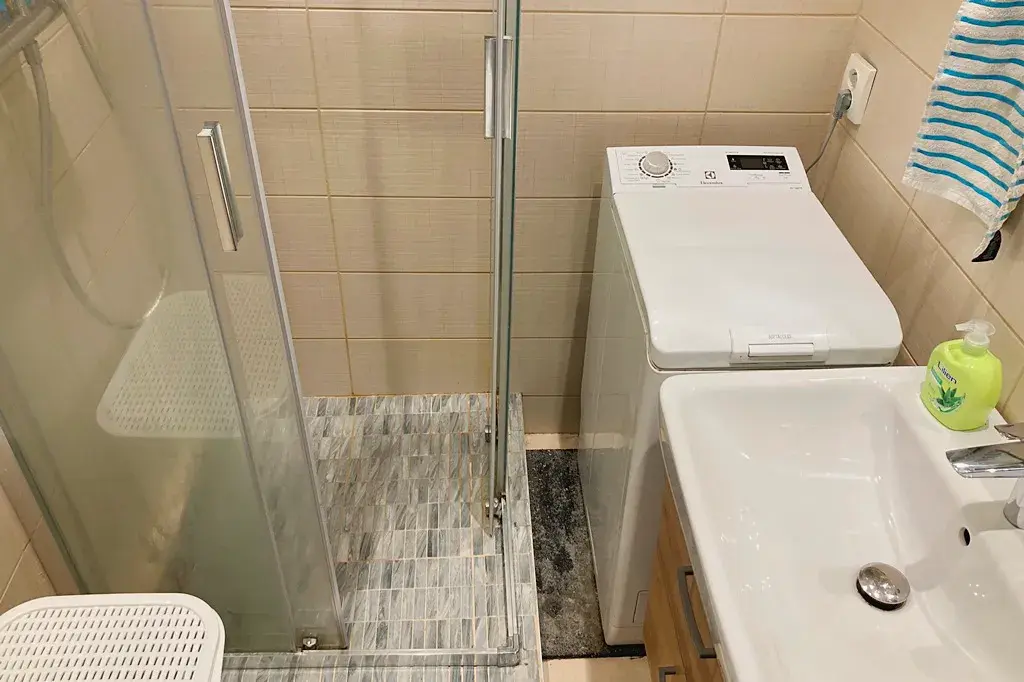 Byt je ve 4. nadzemním podlaží menšího bytového domu a byl před nedávnem vkusně rekonstruován - více napoví fotografie (nábytek na fotkách není součástí nabídky nájmu). Kuchyňská linka je vybavena vestavěnými spotřebiči včetně myčky nádobí, v koupelně je k dispozici pračka. Okna jsou orientována k jihu a byt je tak vždy příjemně světlý. V předsíni je velká vestavěná skříň.