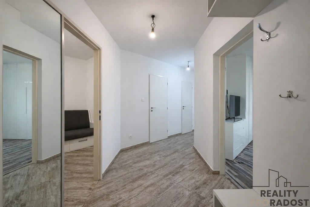 K bytu náleží sklepní kóje (1,3 m²) na stejném podlaží. Parkování je možné přímo před domem nebo na velkém parkovišti z ulice Novolíšeňská. Velkým benefitem je schválený projekt předzahrádky o ploše 34 m² s možností oplocení – ideální pro vytvoření soukromého venkovního prostoru.