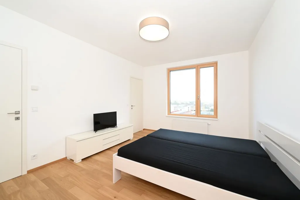 K dlouhodobému pronájmu zde nabízím byt o dispozici 3+kk a podlahové ploše 94 m, ke kterému náleží lodžie o velikosti 3,3 m, sklep o velikosti 4,3 m a garážové parkovací stání. Byt se nachází v 6. nadzemním podlaží a díky velkoformátovým dřevěným oknům s trojskly působí velmi světlým a vzdušným dojmem a zároveň nabízí otevřené výhledy do okolí.