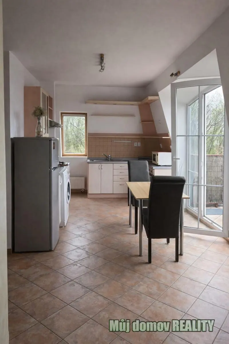 Nabízíme k pronájmu útulný a vzdušný podkrovní byt o dispozici 1+kk, situovaný ve 3. patře cihlového domu v klidné a zelené lokalitě Praha Košíře.