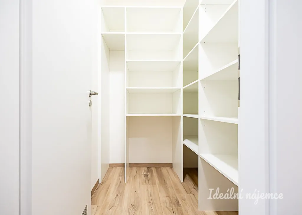 Byt se nabízí skvělou možnost pro vytvoření domova a nabízí se nevybavený. Dispozičně byt nabízí velmi prostornou předsíň a šatník, který obsahuje spoustu úložných polic. Na chodbě se také nachází vestavěná skříň. Kuchyňská linka je prakticky umístěna v přední části obývacího pokoje a obsahuje všechny potřebné spotřebiče včetně myčky. Dále pak byt nabízí prostornou ložnici, která také nabízí vestavěný úložný prostor.