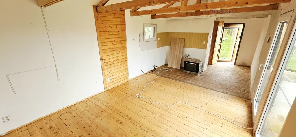 Chata s užitnou plochou 42 m2 a je napojena na elektřinu a dočasně na vodovodní řád souseda s podružným vodoměrem (než se napojí nový vodoměr z řádu) a má zařízenou koupelnu s umyvadlem, toaletou, sprchovým koutem a bojlerem na ohřev teplé vody. Před chatkou je k dispozici venkovní prostorná terasa s výměrou 28 m2. Zdi i strop jsou zatepleny 10 cm vatou a pobity dřevěnými deskami ošetřené kvalitním olejem. Chatu je tak možné dočasně nebo trvale celoročně využívat.