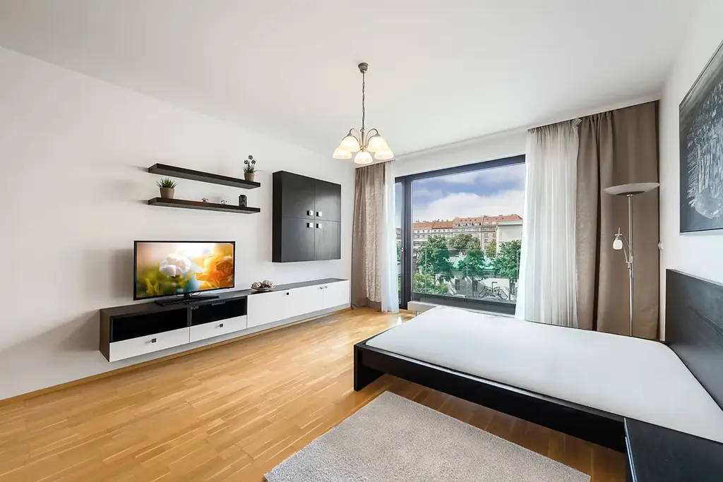 Jedná se o kompletně zařízený byt 1+kk (atelier – není možné přihlášení k trvalému pobytu), o celkové ploše 47 m² + balkon 4 m², situovaný ve 4. nadzemním podlaží luxusní rezidence Korunní.