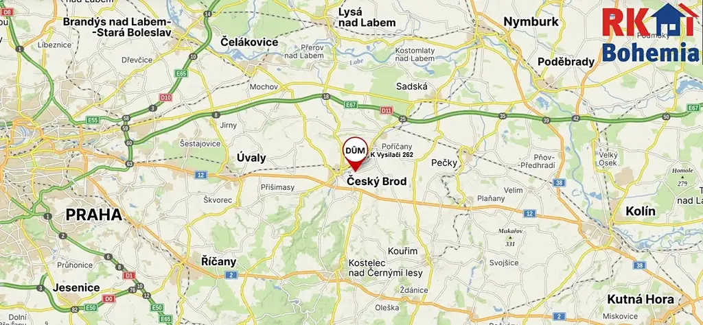 - Dostupnost: Jen 7 km na dálnici D11 (Černý Most za 25 min.). Vlakem z 1 km vzdáleného nádraží jste v centru Prahy či Kolína za 30 minut (spoje jezdí každých 15-30 min).