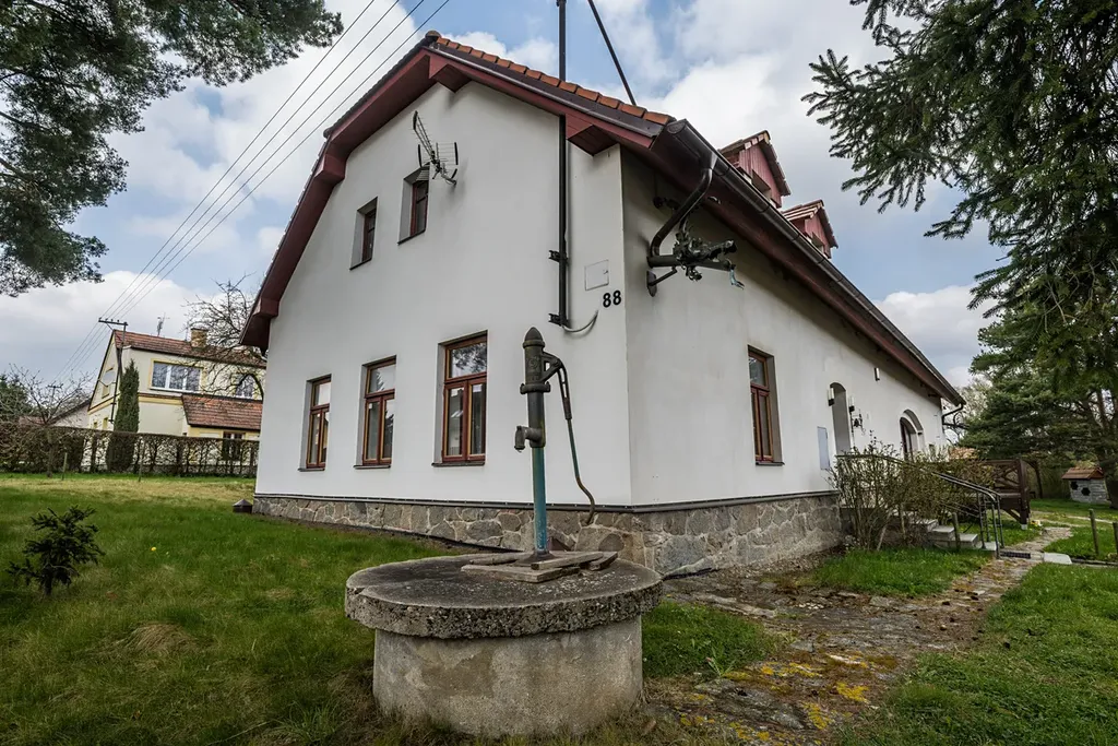 Dům má obytné dvě podlaží, je částečně podsklepený - sklípek je suchý a dal by se využít nejen jako sklad potravin.