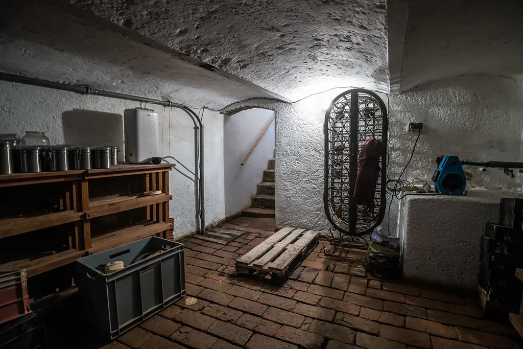V přízemí je obytná hala se sklepem, kuchyně, WC, koupelna a pracovna s kachlovými kamny, na kterou navazuje další obytná místnost. V přízemí je podlahové topení.
