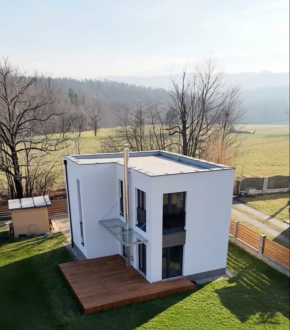 Jedná se o menší dvoupodlažní dům s terasou.