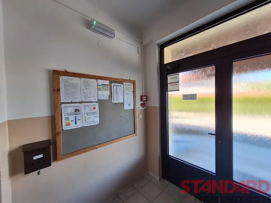 Dispozice: prostorná předsíň, samostatný pokoj cca 25 m², velká koupelna s vanou a sprchovým koutem, samostatné WC, kuchyně, obývací pokoj cca 32 m² a další pokoj cca 21 m². Slunný byt, všechna okna orientována na východ.