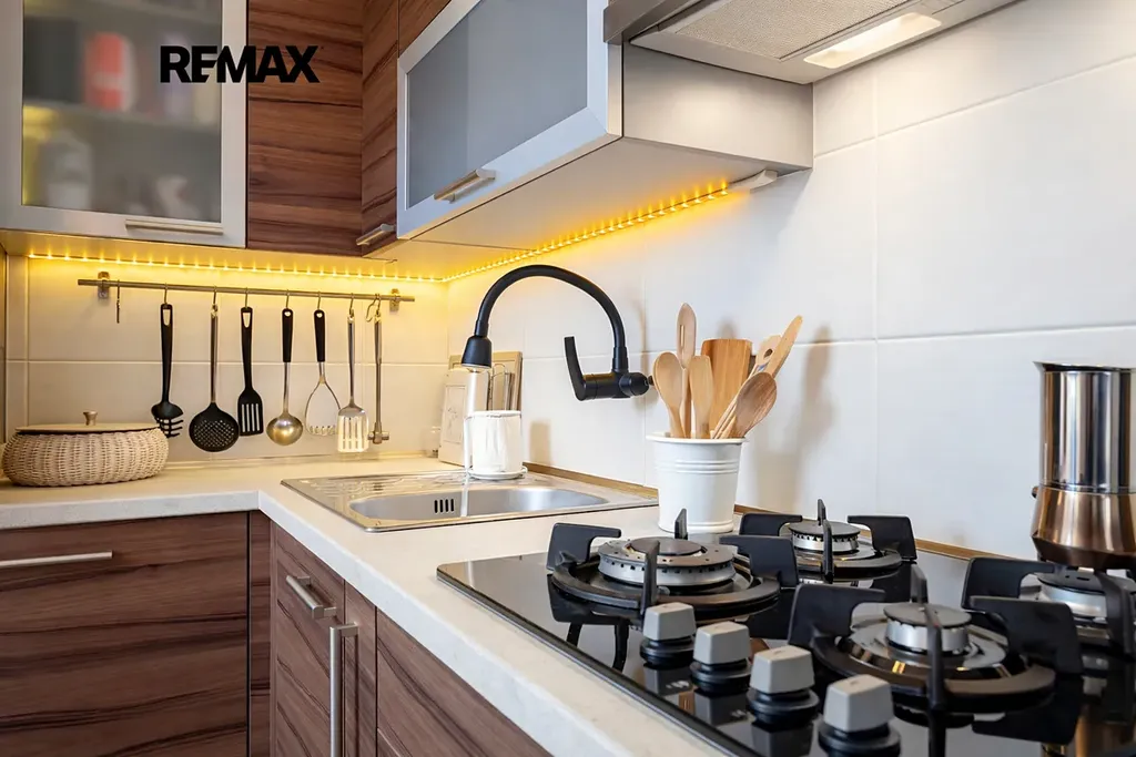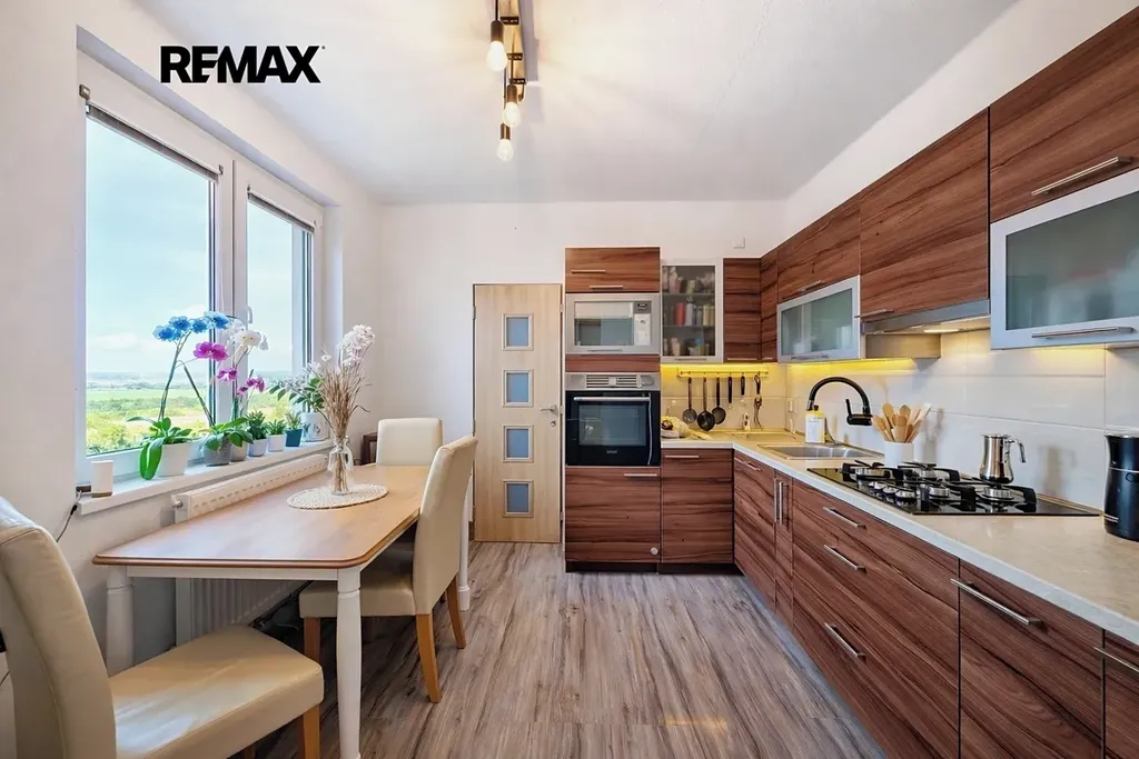 Hlavním benefitem bytu je velkorysý obývací pokoj (25 m²), který nabízí dostatek místa pro rodinné zázemí. Na něj navazuje samostatná kuchyně (10 m²) s moderní kuchyňskou linkou a vestavěnými spotřebiči. Za kuchyní se nachází praktická spíž/komora s oknem, ideální nejen pro skladování, ale i pro umístění pračky a sušičky. Byt dále disponuje dvěma samostatnými ložnicemi orientovanými na sever (11 m² a 12 m²), zatímco kuchyň a střešní okno v obývacím pokoji směřují na jih, což zajišťuje příjemné světelné podmínky během celého dne. Součástí bytu je také centrální chodba, ze které je vstup do všech místností, dále koupelna po rekonstrukci z roku 2020 s vanou a samostatná toaleta.