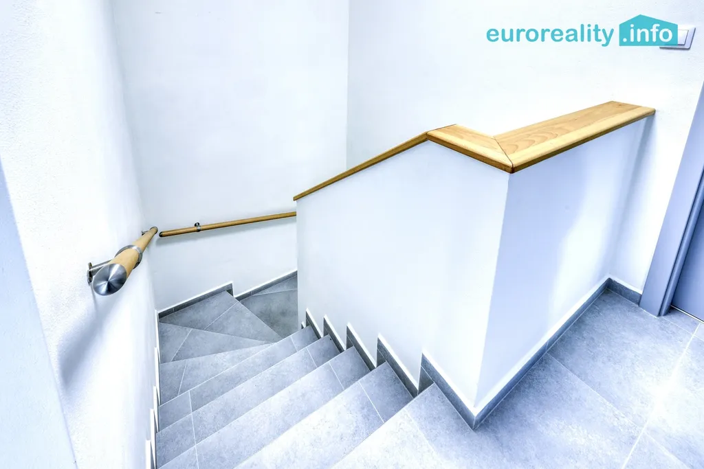 V patře jsou umístěny ložnice a další pokoje, koupelna s toaletou a vstup na horní terasu o ploše cca 18 m², která nabízí příjemný prostor pro relaxaci.