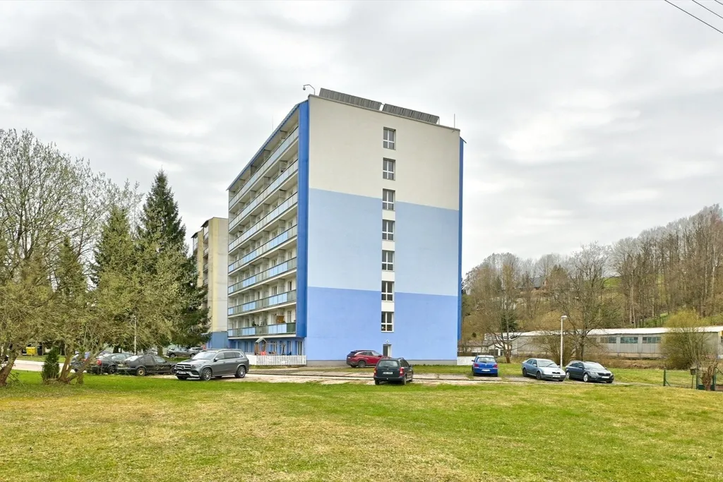 Nabízíme k prodeji prostorný byt 1+kk s velkou lodžií v pátém nadzemním podlaží panelového domu ve Vrchlabí, v části města Hořejší Vrchlabí. Obývací pokoj má dřevěný kazetový strop a okrasné dřevěné prvky s bodovým podsvícením. Za závěsem se nachází prostor pro spaní. V celé délce bytu je lodžie orientovaná k západu do klidné části a do zeleně. Na obývací pokoj navazuje kuchyňský kout. Koupelna je vybavená sprchovým koutem, toaletou a umývadlem, je zde i dostatečný prostor pro pračku. V předsíni lze umístit botníky či šatní skříně. K bytu náleží malá komora v rámci podlaží, parkování u domu. Vhodné pro trvalé bydlení či celoroční rekreaci. Samostatné vytápění a ohřev teplé vody umožňuje optimalizaci nákladů na bydlení. Lokalita je dobrou výchozí pozicí na hlavním tahu Vrchlabí – Špindlerův Mlýn. Před domem je zastávka MHD a vyhlášená restaurace. Ostatní obchody, služby, sportovní a volnočasové aktivity v rámci Vrchlabí a nejbližšího okolí. Pro více informací či domluvení prohlídky nás neváhejte kontaktovat.