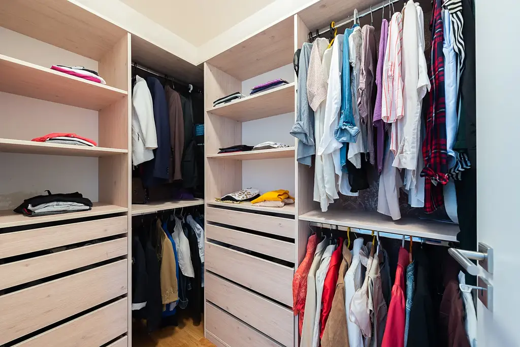 ložnice s vestavěným nábytkem, šatnou a ambientním osvětlením