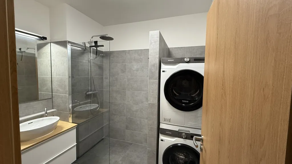 Kvalita je v tomto bytě standardem. Bytový dům je nízkoenergetický, v kategorii B. Navíc je zde tepelné čerpadlo, v celém bytě podlahové topení a v kombinaci s kvalitnými laminátovými podlahami je tak zajištěn optimální tepelný komfort. Veškerá okna mají navíc předokenní hliníkové žaluzie, pro další tepelný komfort a soukromí majitelů. Veškeré vybavení, zařízení a nábytek jsou velmi citlivě barevně sladěny v interiéru, mají své logické místo a vše dohromady tvoří nadčasový , příjemný, útulný celek, sálající teplem domova.