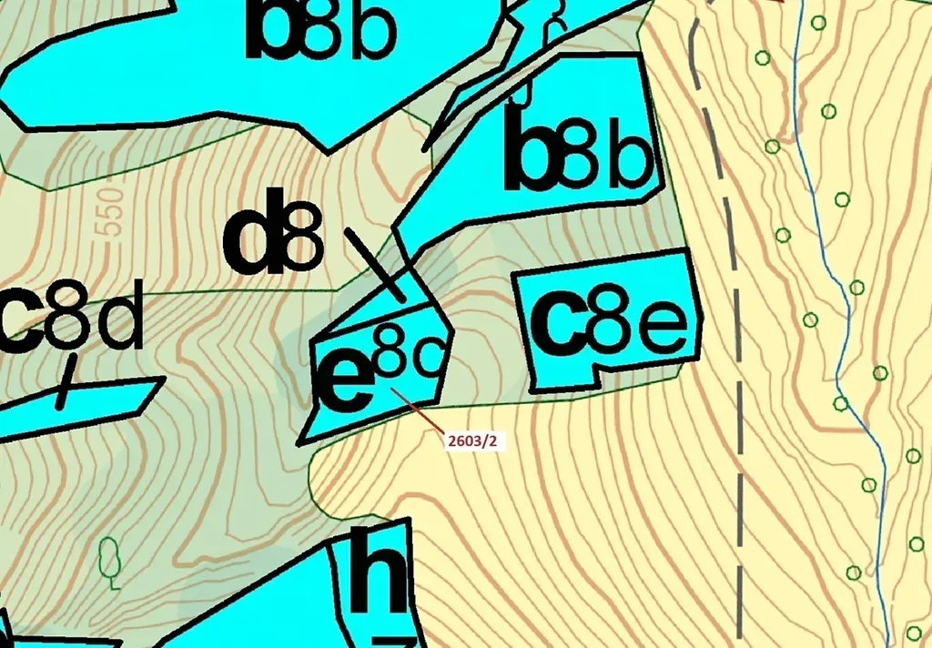 Lesní pozemek o výměře 1036 m2, parcelní číslo 2603/2, podíl 1/1, katastrální území Zděchov, obec Zděchov, obec s rozšířenou působností Vsetín, okres Vsetín, Zlínský kraj.