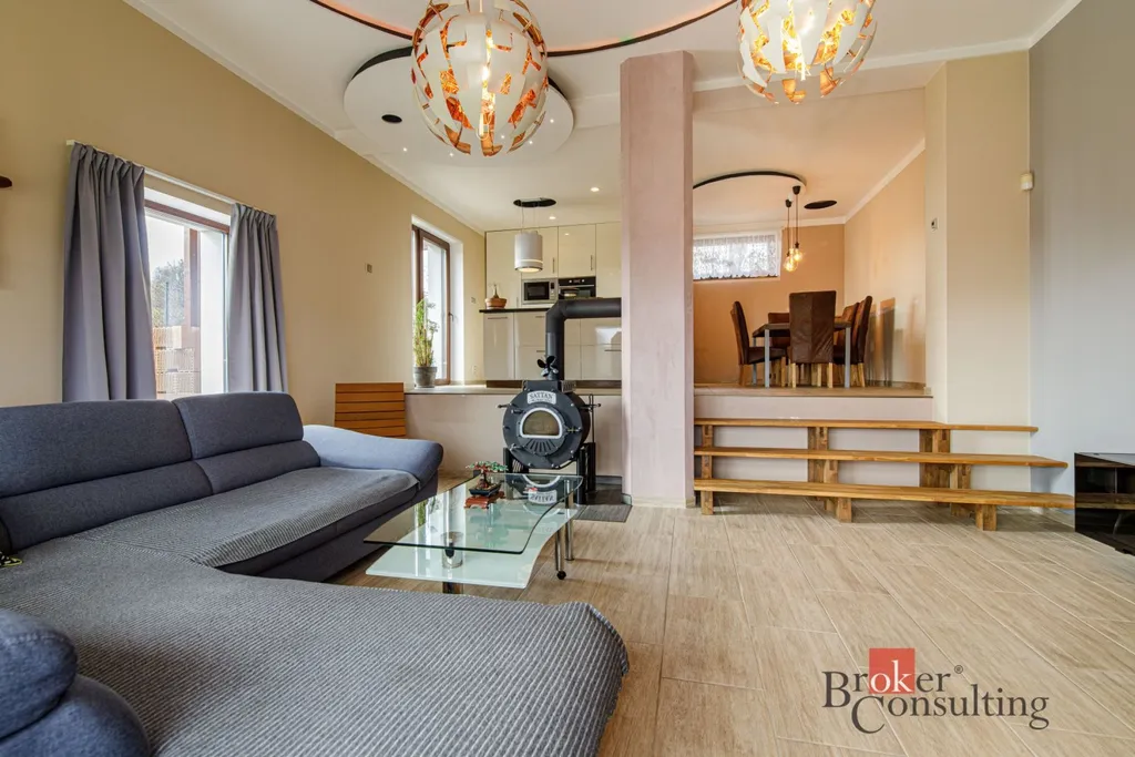 - v prostorném otevřeném obývacím pokoji který je spojen s moderní kuchyní se také nachází krb, který umocňuje zimní večery s výhledem na zasněženou zahradu, ale hlavně plní funkcí vytápěni krásným sálavým teplem.