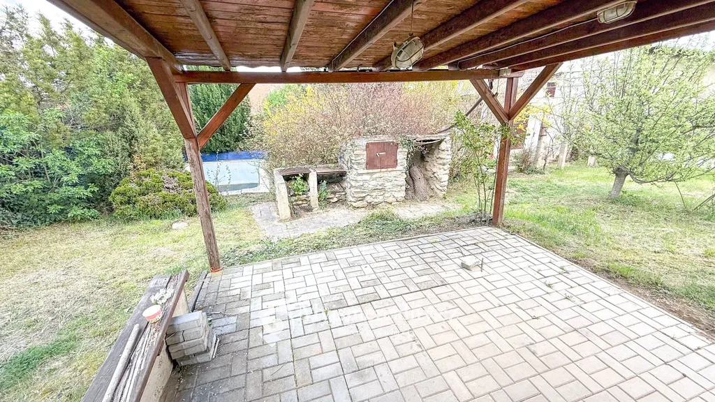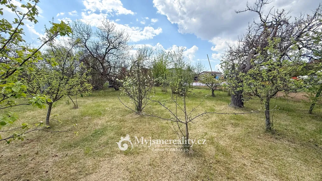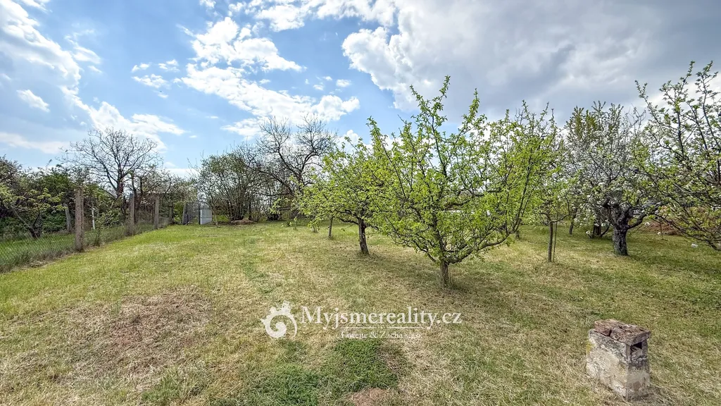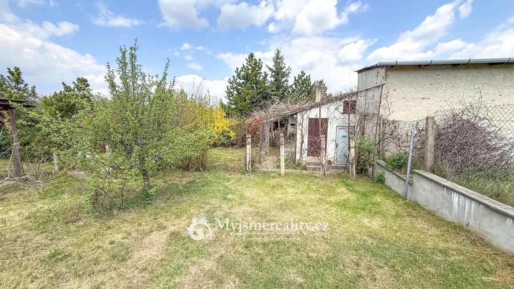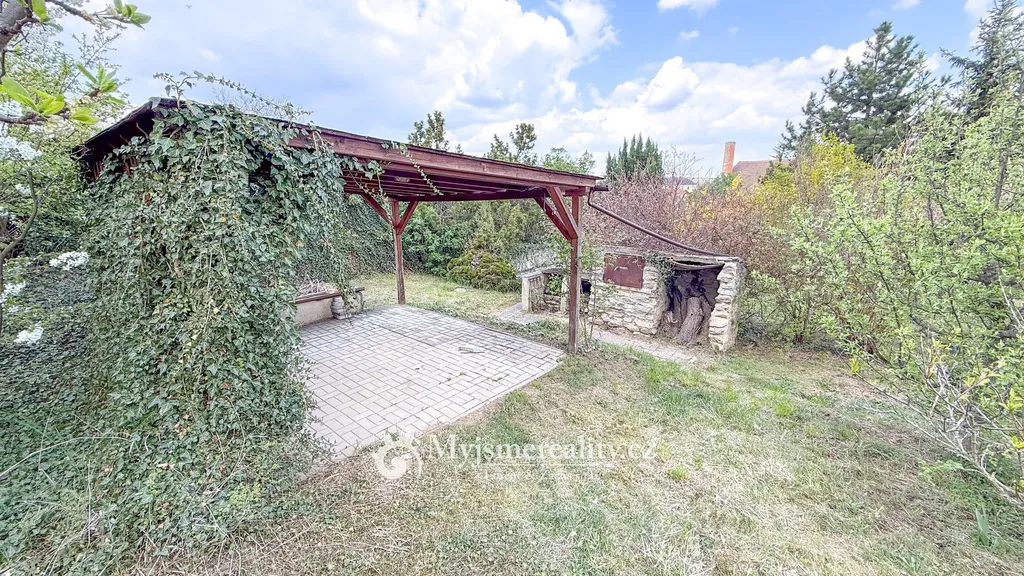 Dominantou pozemku je prostorná pergola, která nabízí ideální zázemí pro posezení s rodinou či přáteli – ať už při letním grilování, nebo klidném odpočinku. Součástí je také podsklepená cihlová chata o velikosti 24 m² a samostatná hospodářská stavba (6 m²), vhodná jako dílna či úložný prostor.