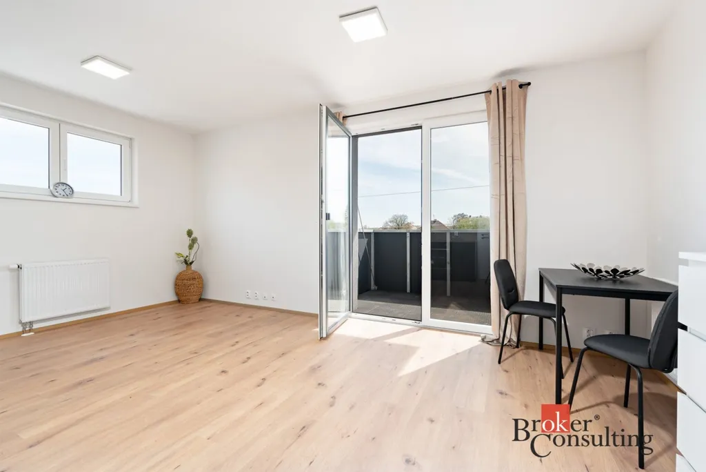 Nabízíme k pronájmu velmi pěkný byt s balkonem o dispozici 1+KK a podlahové ploše 35,5 m2.