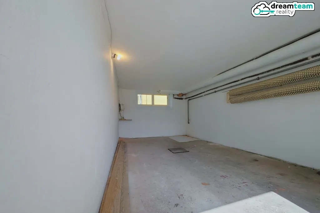 Dům je celopodsklepený — prádelna, spižírna, prostorná dílna pro všechny ty pilníky a závitníky a kotelna se vším potřebným včetně místa pro dřevo na půl zimy. Velká garáž s novými vraty čeká na Vašeho ocelového miláčka.