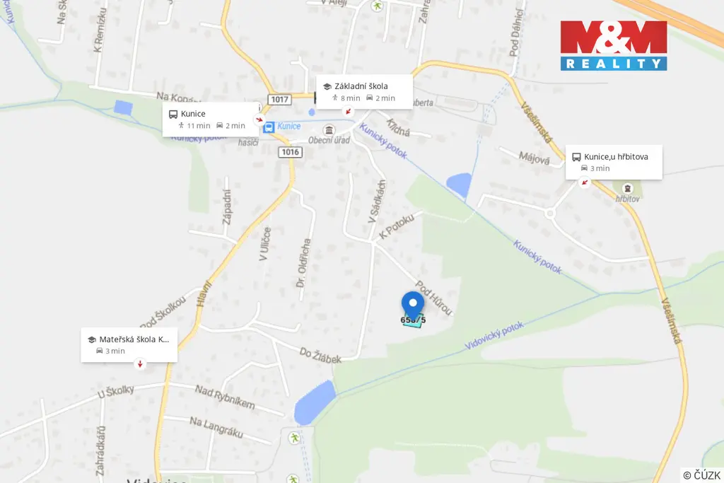 Nabízíme k prodeji stavební pozemek o výměře 924 m² v atraktivní klidné části obce Kunice u Říčan, v ulici Pod Hůrou. Pozemek se nachází na okraji zástavby přímo u lesa, jen pár minut chůze od centra obce a základní školy, a je součástí projektu čtyř stavebních parcel, pro které byla zpracována studie výstavby RD i návrh technické infrastruktury. Přístup bude zajištěn neveřejnou komunikací na spoluvlastněném pozemku, jejíž projekt se připravuje pro stavební povolení a řeší napojení na infrastrukturu v ulici Pod Hůrou (vodovod, kanalizace, elektřina). Vlastníci pozemků se dohodli na společném postupu při její realizaci i vybudování inženýrských sítí. Součástí řešení je také plánovaná výstavba mostku propojujícího ulici Pod Hůrou s komunikací U Zlatého potoka (investice cca 100 000 Kč).Plánovací smlouva s obcí Kunice o realizaci infrastruktury a převodu části komunikace do správy obce je v přípravě. Výhodou je vypracovaná studie výstavby rodinného domu. Pro více informací nás kontaktujte