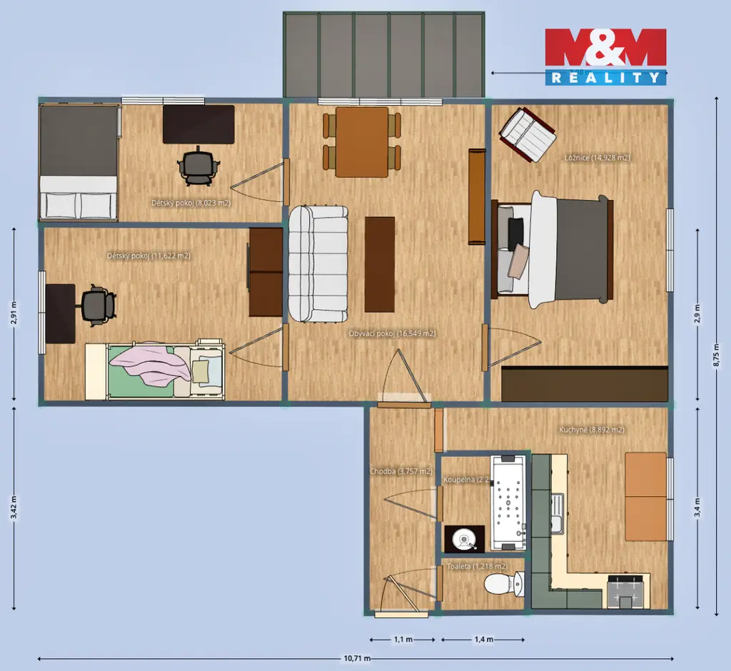 Nabízíme k prodeji prostorný byt 4+1 s balkónem v jedné z nejžádanějších částí Ostravy – Poruby, v nízké bytové zástavbě. Byt o celkové ploše 73 m² (vč. balkónu i sklepa), nabízí praktickou dispozici - velký obývací pokoj a tři neprůchozí pokoje, což zajišťuje dostatek prostoru pro rodinné bydlení. Velkou předností je prostorný balkón, který je aktuálně ve výstavbě a brzy nabídne příjemné místo k relaxaci s výhledem do okolní zeleně. Orientace bytu na tři světové strany zajišťuje dostatek denního světla po celý den a příjemnou atmosféru interiéru. Byt prošel rekonstrukcí, která zahrnovala vyzdění bytového jádra, elektroinstalaci v mědi, nové plastové odpady, renovaci parket a kvalitní dřevěnou kuchyňskou linku s vestavěnými spotřebiči. Byt je v dobrém stavu, stačí vymalovat a můžete bydlet. Výhodou je také možnost podnájmu, tzn. investiční příležitost. Škola, lékař, obchody, vše za rohem. S financováním vám odborně poradíme a na váš kontakt se těšíme.