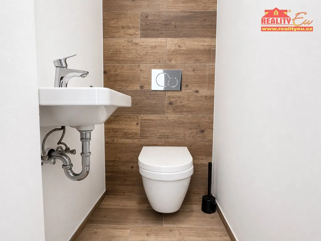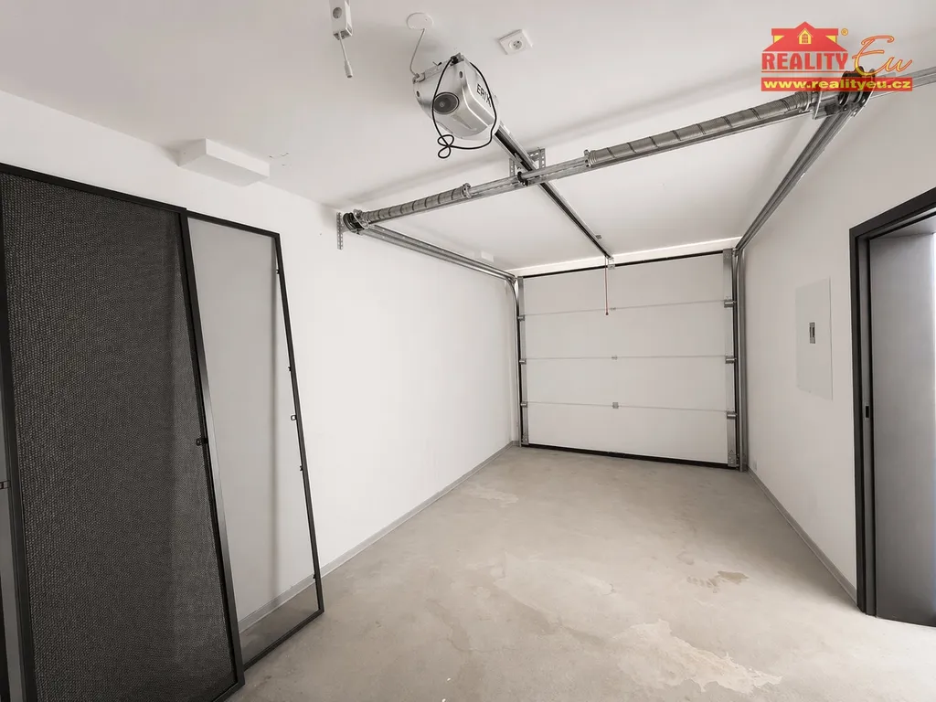 Velkým benefitem je krajová poloha domu, která poskytuje více soukromí a souseda méně než dům v řadě. U domu je možné parkovat i další vozidla a to před garáží, která má elektrická výsuvná vrata.