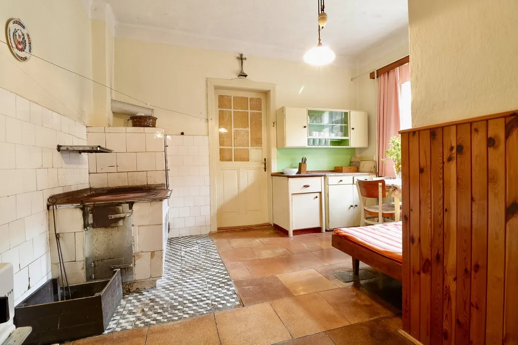 Rodinný dům o dispozici 4+1 a užitné ploše přibližně 145 m2 vás na první pohled zaujme svou vzdušností. Vysoké stropy dodávají místnostem pocit volnosti a noblesu starých poctivých staveb. Dispozice zahrnuje kuchyni, čtyři samostatné pokoje, koupelnu, samostatné WC a praktickou spíž. Dům byl ještě před dvěma lety obýván a je v zachovalém stavu, nicméně pro moderní standardy bydlení bude vyžadovat rekonstrukci. K dispozici je také menší sklep a prostorná půda s vysokým krovem, která nabízí možnost velkorysé vestavby dalších obytných prostor.