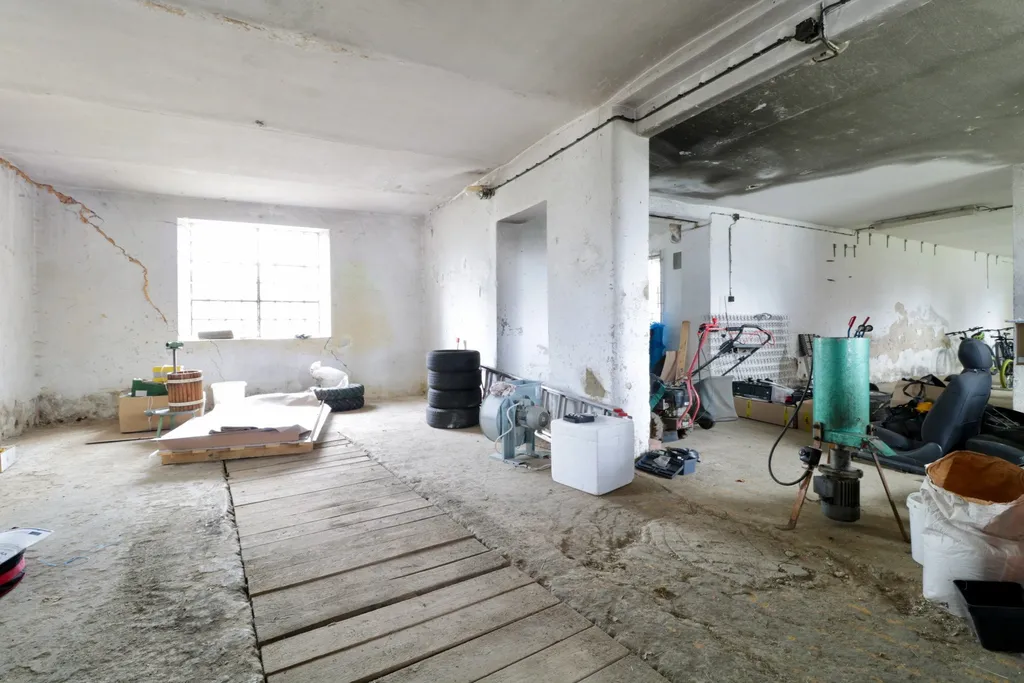 Bývalá truhlárna: dílna s doplňkovou místností a sprchou, připravená pro řemeslnou výrobu, ateliér nebo technické zázemí.