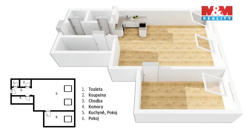 Pronájem bytu 2+kk v 4. nadzemním podlaží zděného domu v centru Trutnova. Dispozice: vstupní chodba Vás zavede po levé straně na WC, koupelny s vanou a umyvadlem, po pravé straně do komory a dále do prostorné kuchyně s obývací místnosti a do ložnice. Byt je prostorný, světlý, má zavedený internet. Nachází se v domě s bezbariérovým vstupem a výtahem. V místě je autobusové a vlakové nádraží, kulturní vyžití, obchody, pošta a školy. Kauce nutná.