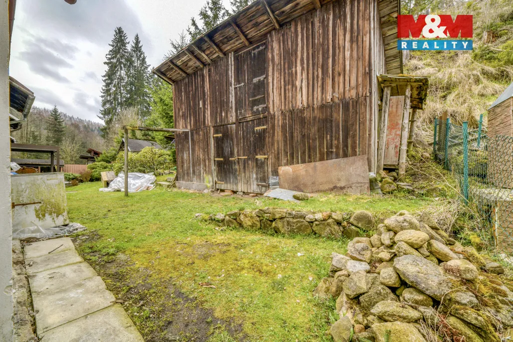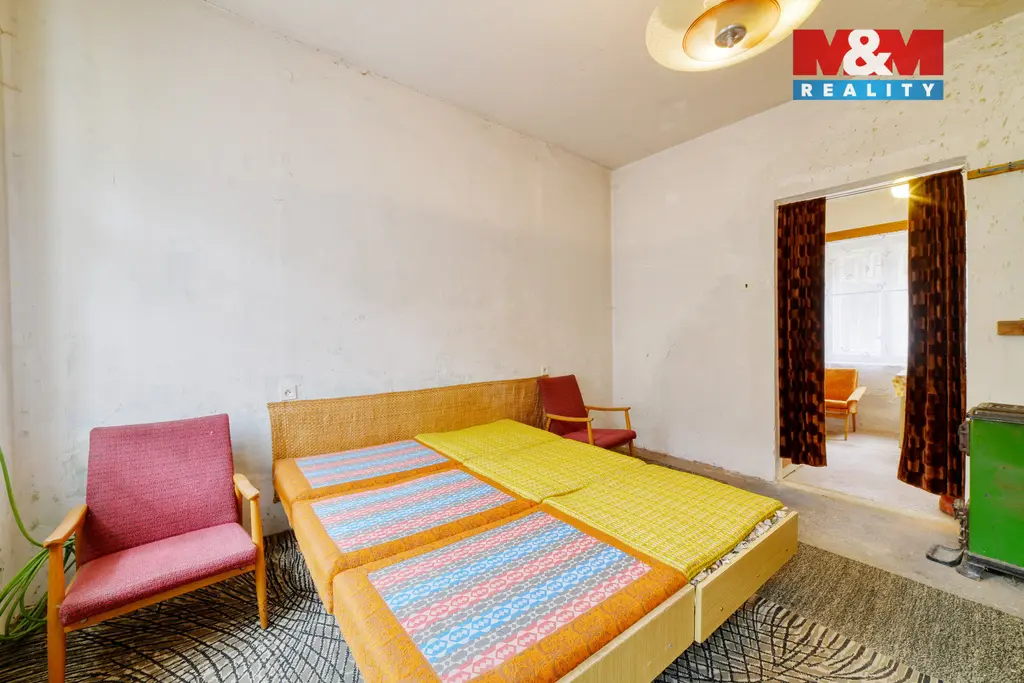 Nabízíme k prodeji rodinný dům(pravá polovina dvojdomu), který se nachází v klidné části obce Rotava, v ulici Růžové údolí. Lokalita je tvořena pouze několika domy v řadě dvojdomků, a proto zajišťuje poklidné bydlení. Cihlový dům je v původním stavu a vyžaduje kompletní rekonstrukci, což nabízí novému majiteli možnost úprav dle vlastních představ. V přízemí se nachází vstupní chodba, ze které je přístup do kuchyně, obývacího pokoje, koupelny a sklepa. Dřevěným schodištěm se dostanete do 1. patra, kde je možné vybudovat další obytný prostor. Vytápění domu je řešeno kamny na pevná paliva, nemovitost je napojena na vodu i kanalizaci. Na pozemku se nachází dřevěná kůlna a zahrada je částečně oplocena. Součástí prodeje je také neoplocený pozemek o výměře 120 m², situovaný před domem za komunikací, který lze využít například jako parkovací stání, prostor pro uskladnění dřeva či pro volnočasové aktivity. Nemovitost je vhodná pro páry, menší rodinu nebo jako startovací či rekreační bydlení.