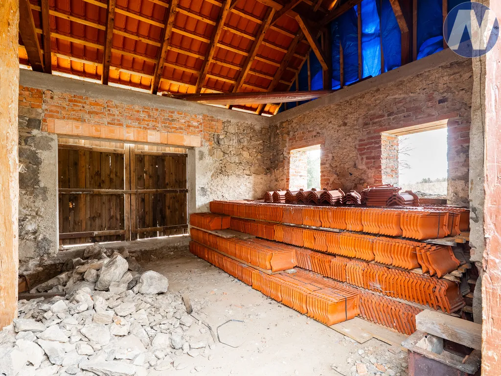 Stávající objekt je původní zděná venkovská usedlost s uzavřeným dvorem. Nemovitost nabízí flexibilitu – nový vlastník se může rozhodnout pro rekonstrukci, nebo navázat na připravený projekt nové výstavby. Objekt je napojen na elektrickou síť (230/400 V), zásobování vodou je řešeno vlastní kopanou studnou a odpad je sveden do septiku.
