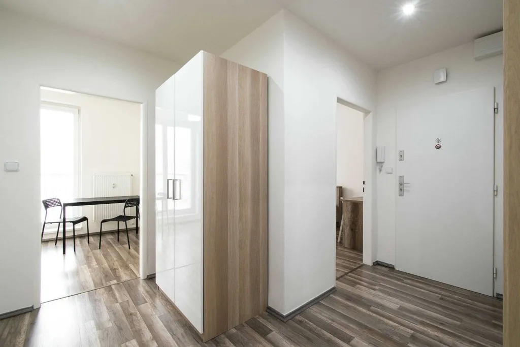 Byt se nabízí plně vybavený. Kuchyně disponuje linkou se spotřebiči - sklokeramická dvouplotýnková deska, digestoř, lednice s mrazákem. K dispozici je také jídelní stůl s židlemi. Ložnice je vybavena manželskou postelí, pracovním stolem, skříňkou a televizí. V předsíni se nachází prostorná šatní skříň, zrcadlo a předsíňová stěna. Koupelna se sprchovým koutem, umyvadlem, zrcadlem a topným žebříkem je dohromady s toaletou. Majitel nabízí zakoupení pračky pro nového nájemce. V bytě se nachází komora, kterou je možno využít namísto sklepa.