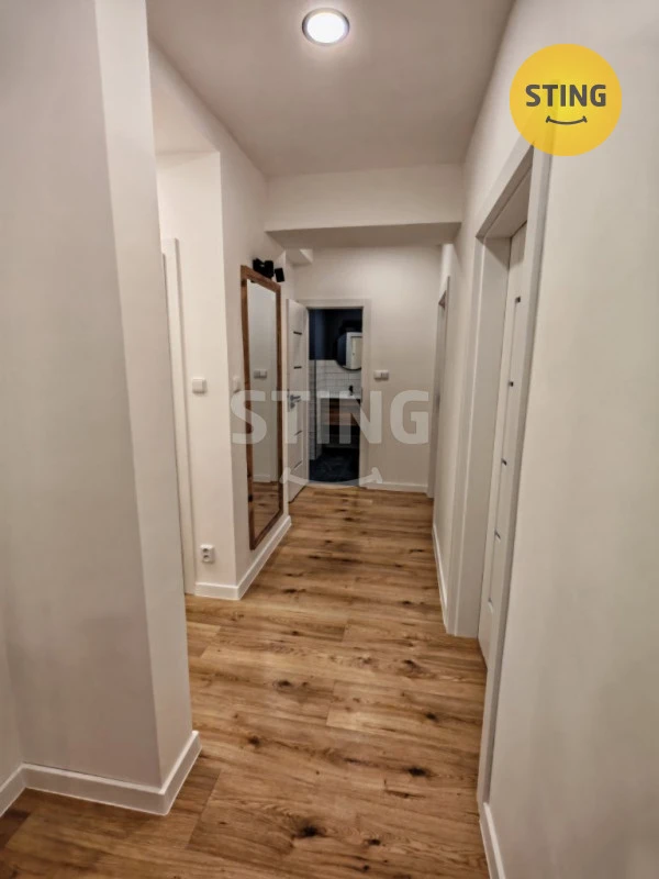 Díky rekonstrukce vznikla velká atypická koupelna s vanou, umyvadlovou skříňkou š. 80 cm, místem na pračku i sušičku a další koupelnový nábytek. Obývací pokoj s kuchyňským koutem působí velmi útulně. Kuchyňská linka je vybavená značkovými elektrospotřebiči ( myčka, el. trouba, mikrovl. trouba, indukční deska, digestoř, atd.). Další dva pokoje mají samostatné vstupy z předsíně. Mimo to byt disponuje šatnou a samostatným WC.