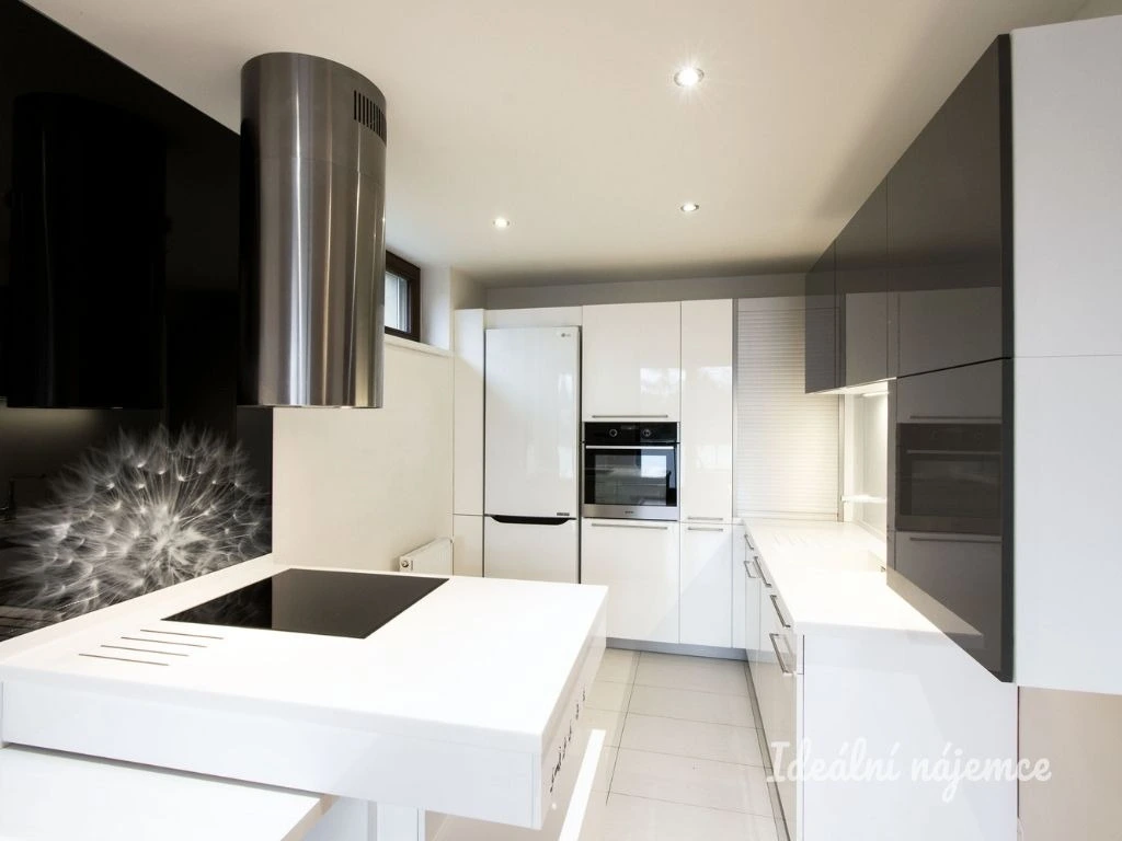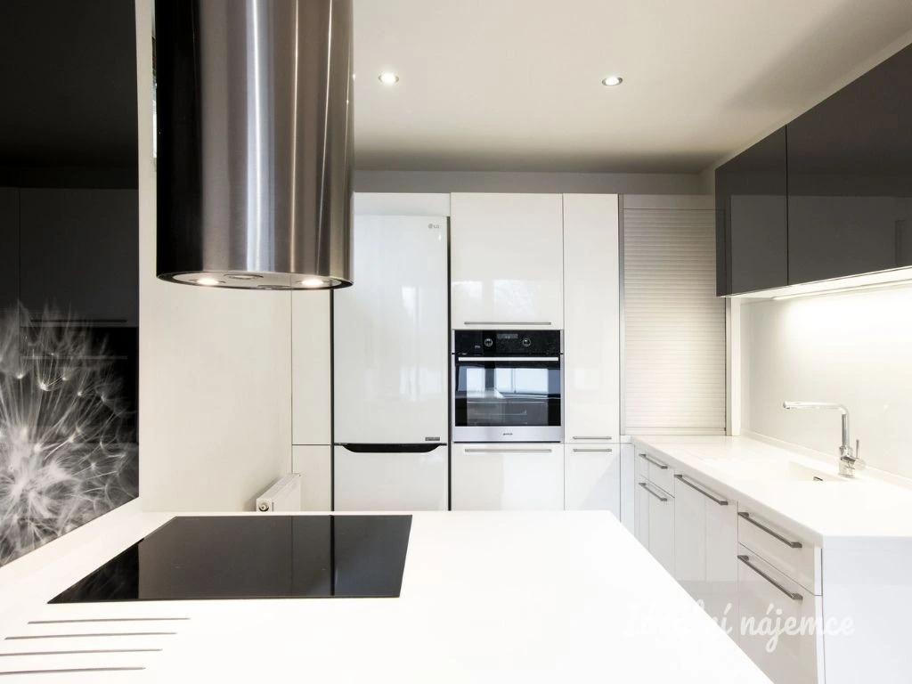 Byt se nabízený vybavený. Moderní kuchyňská linka disponuje sklokeramickou deskou s designovou digestoří, dále pak vestavěnou elektrickou troubou, myčkou a lednicí s mrazákem. Kuchyně nabízí dostatek úložného místa i praktický jídelní stůl. Z kuchyňského koutu vidíme na obývací část s pohovkou, taburetkem, poličkou, TV stolkem a samotnou TV na stěně. Z této místnosti je vstup na balkon. Z předsíně se dále dostaneme do koupelny s vanou, umyvadlem a zrcadlem, spolu s pračkou, žebříkem a policovým systémem. Další oddělenou místností je samostatná toaleta rovněž s policovým systémem i malým umyvadlem. Součástí předsíně je i šikovná úložna komora s úložnými prostory a vysavačem. V koupelně, toaletě i komoře je stropní odsávání pro eliminaci vlhkosti. Poslední důležitou místností je ložnice, nabízena nezařízená až na prostornou bílou šatní skříň.