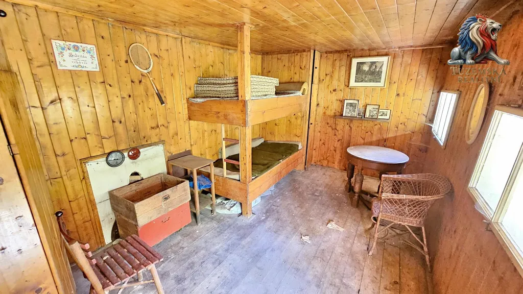 Chata umístěná v horní části je dřevěná a její stáří se odhaduje na cca 60 let. Dlouhou dobu je již neužívaná a jste to možná Vy, komu bude znovu dělat radost.