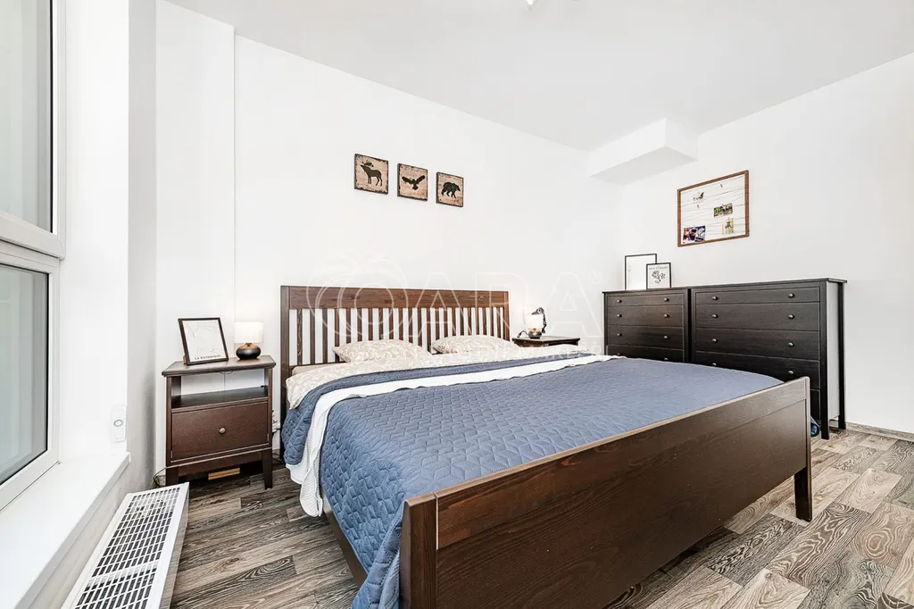 Byt se nachází ve spojovací části dvou věží rezidence, což zajišťuje snadný přístup z výtahu i z parkovacích pater.