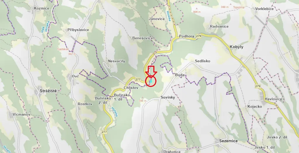 - p.č. 487 vedená jako lesní pozemek o celkové výměře 1 813 m2 (stáří lesa 79 let - zastoupení dřevin olše, stáří lesa 24 let - zastoupení dřevin střemcha, olše, buk),