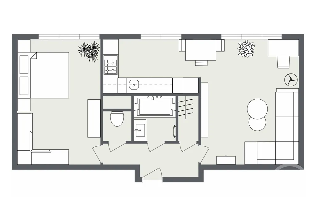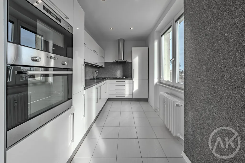 Kuchyně je plně vybavena moderními spotřebiči. Prostor kuchyně je chytrým způsobem navržen tak, aby byl funkční a zároveň esteticky příjemný.