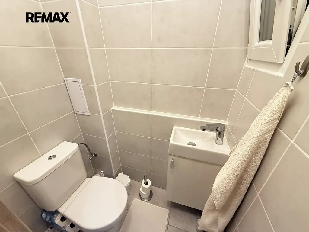 Dále je v bytě koupelna s velkým sprchovým koutem, toaleta je samostatná místnost s oknem a umývátkem.