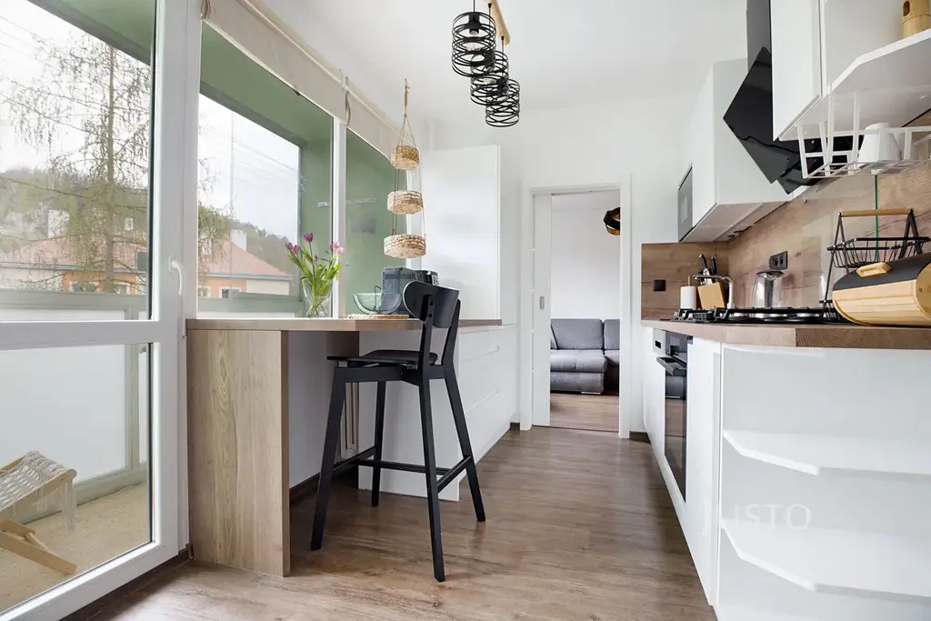 V zastoupení majitele Vám nabízím ke koupi moderní bytovou jednotku o dispozici 3+1 s lodžií, o celkové výměře 65,6 m², umístěnou ve 4. nadzemním podlaží bytového domu v klidné a vyhledávané lokalitě Ústí nad Labem – Střekov, ulice Kamenná.
