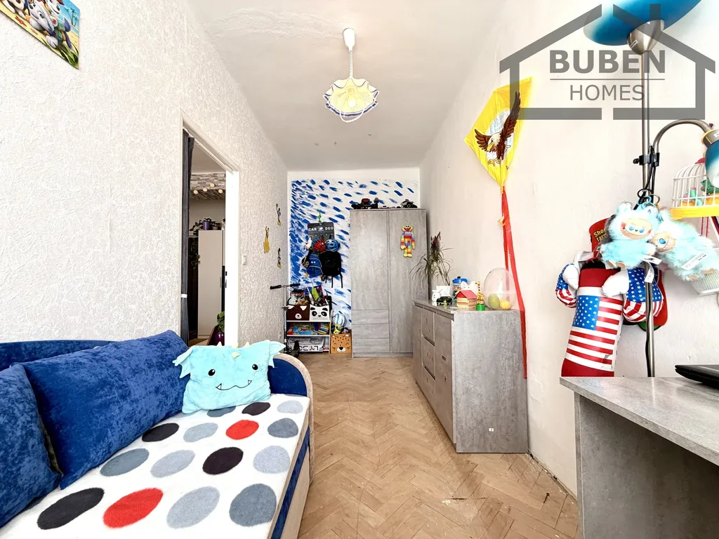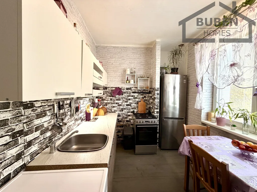 V ceně je zahrnutá kuchyňská linka a sporák. K bytu náleží sklepní kóje v suterénu domu (7 m2).