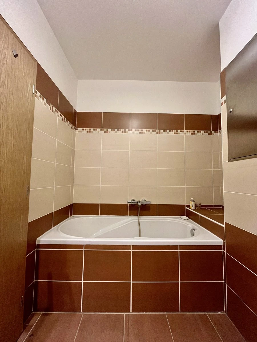 Byt je částečně vybavený – kuchyňská linka disponuje elektrickou troubou, sklokeramickou deskou s digestoří a myčkou. Koupelna s toaletou je společná a vybavená vanou. Samostatný pokoj nabízí dostatek prostoru i vestavěné šatní skříně.