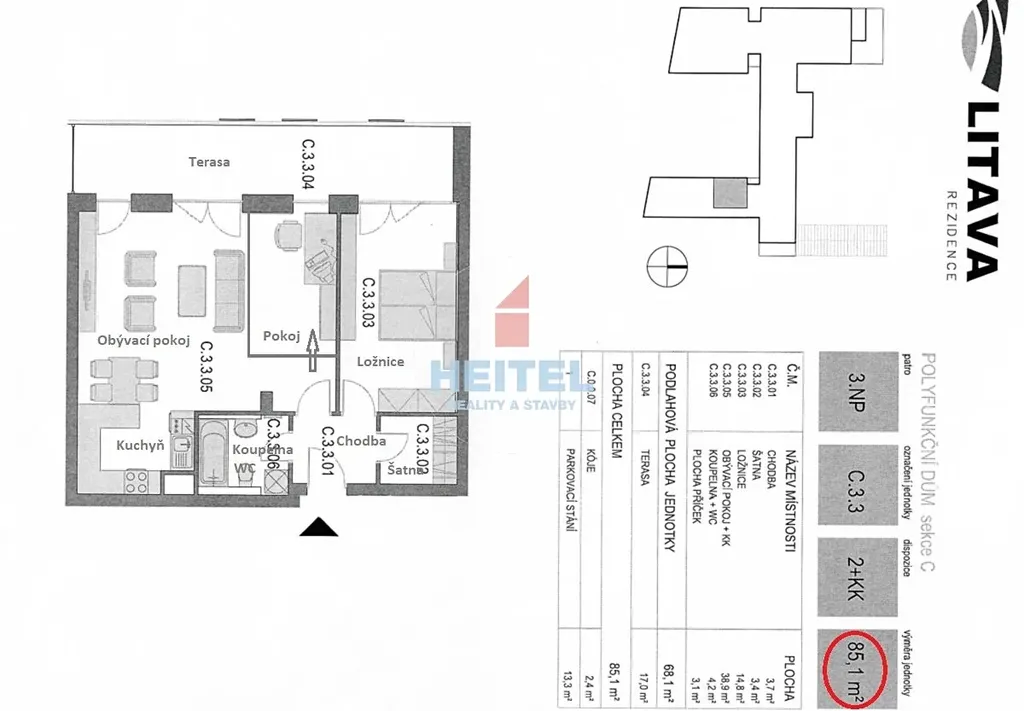 Tento moderní byt o výměře 68 m2 s terasou o výměře 17 m2 Vám poskytne veškerý komfort a pohodlí, které potřebujete. Obývací pokoj s kuchyní má nadstandardní výměru 39 m2, která umožňuje v případě potřeby jednoduchou úpravou získat pokoj navíc, tedy byt o dispozici 3+kk.