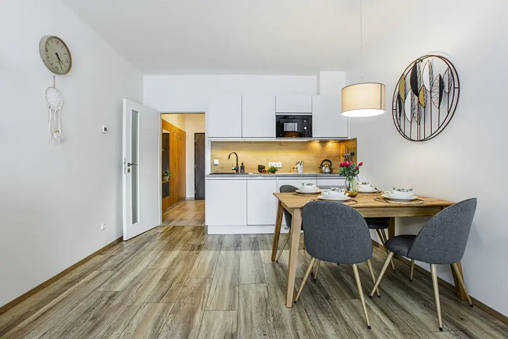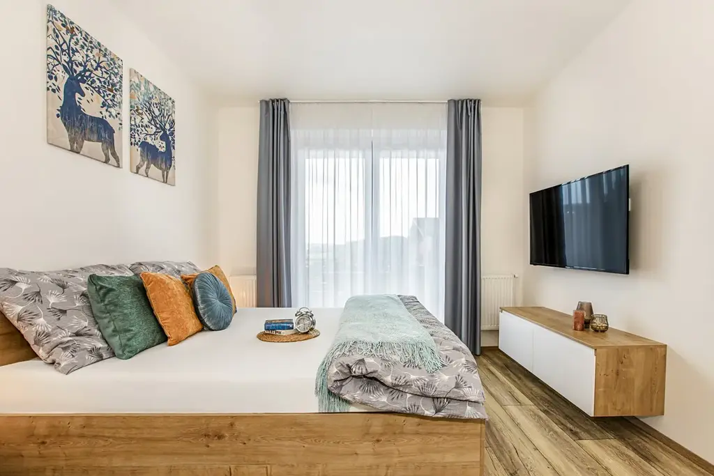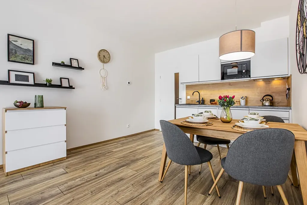 Jezdíte rádi na Lipno a chcete tu mít svoje zázemí? Pak se přijeďte podívat do rezortu Korzo Lipno, který najdete 200 m od vody a kousíček od centra města, v klidné části s krásným výhledem a skvělým zázemím. V prvním patře zde najdete prostorný apartmán 2+kk, kompletně vybavený nábytkem, s prostornou ložnicí, kam se vejde 4-členná rodina a velikým balkonem (11 m2), který je přístupný z obou pokojů a navíc orientován na západ. Kuchyně je také kompletně vybavena - myčka, lednice s mrazákem, sklokeramická deska, mikrovlnná trouba. Koupelna se sprchovým koutem, WC a pračkou. Na oknech nainstalovány elektrické předokenní žaluzie. Ústřední dálkové vytápění - plyn + tepelná čerpadla. PENB třídy B, nízké měsíční náklady. V ceně je kryté parkovací stání v přízemí domu, stejně jako sklepní koje. Samotná orientace apt. směrem na Lipno Vás při jakékoli návštěvě či návratu bude bavit. A pokud hledáte něco, co můžete i dále pronajímat, tak je tu k dispozici kompletní správa apartmánů s výborně fungující recepcí. Novostavba z roku 2023, takže se na ní vztahuje ještě stavební záruka 1 a půl roku. Více info v RK.