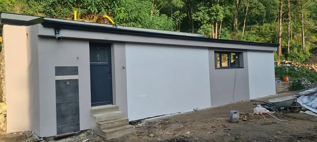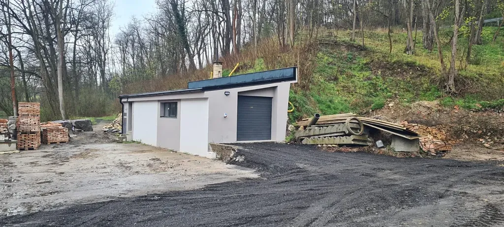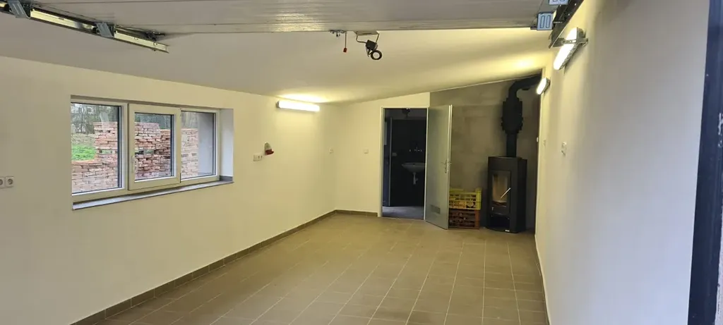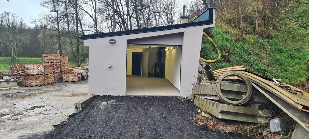 K pronájmu nabízíme prostor pro výrovu nebo služby (garáž se sociálním zázemím - WC, spracha, atd.). Služby (voda + elektřina) fixně 1500 Kč/měsíc, nájem 10000 Kč. Topení možno i krbovými kamny. Parkování na přilehlém parkovišti (zámková dlažba). Ideální pro moto servis, elektromontáže, autofolie, prodejnu, atd. 50 m na hlavní silnici. Autobus zastávka 150 m. Provize RK 6000 Kč