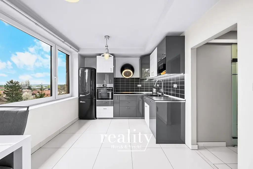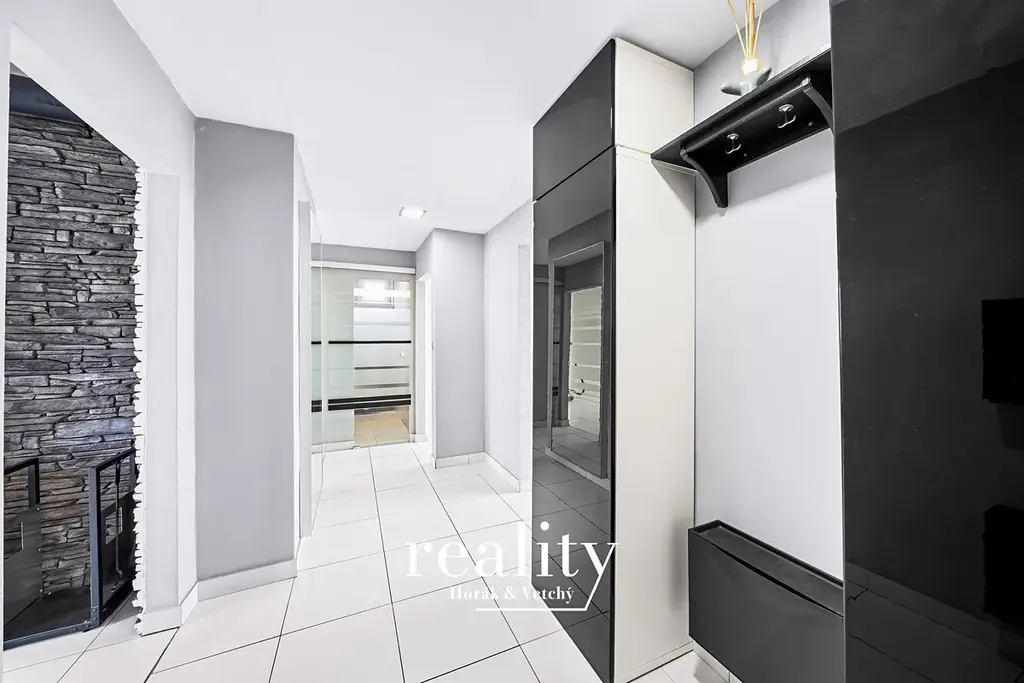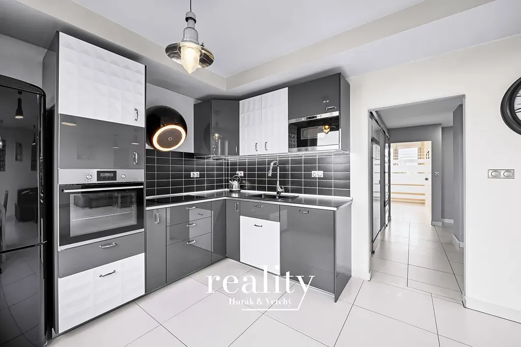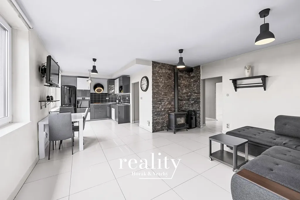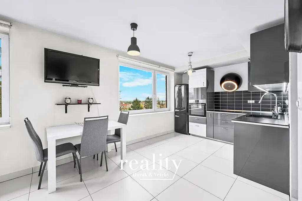 Dispozice bytu je velmi dobře řešená a nabízí dostatek prostoru pro rodinné bydlení. Dominantou je obývací pokoj s kuchyňským koutem v podobě prostorné kuchyňské linky včetně vestavěných spotřebičů, dále ložnice, dětský pokoj, koupelna se sprchovým koutem, samostatná toaleta včetně pisoáru a prostorná předsíň, která poskytuje dostatek místa pro úložné prostory.