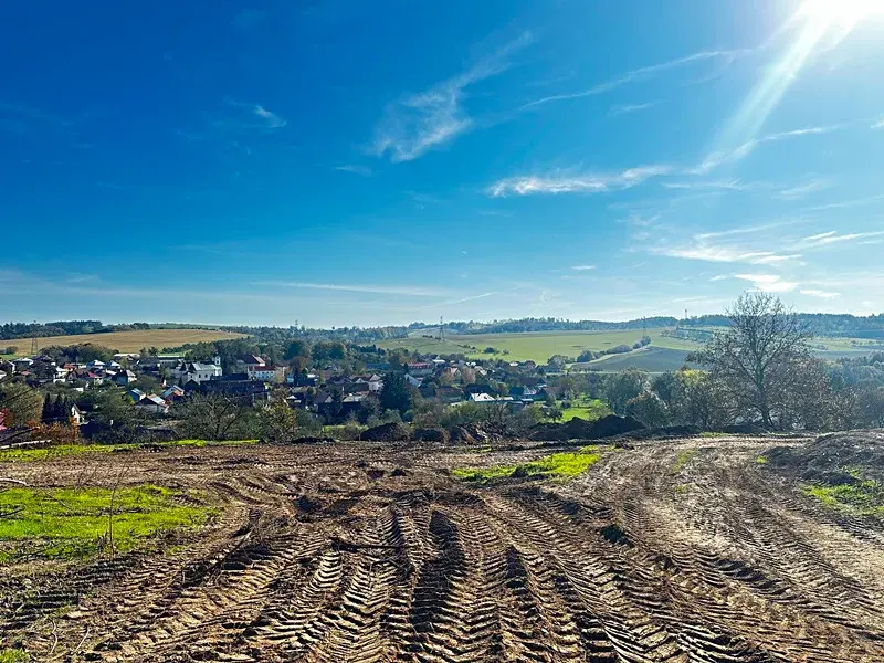 K pozemkům budou přivedené inženýrské sítě (obecní vodovod, elektřina, trativod kanalizace pro ČOV).