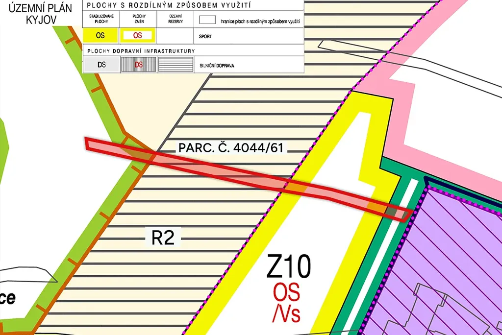 Skrz západní část parcely je navíc plánován západní obchvat města. Je zde proto vymezena územní rezerva (na výkresu označeno jako R2) pro silniční koridor. Ta představuje další spekulativní potenciál a zvyšuje hodnotu pozemku.