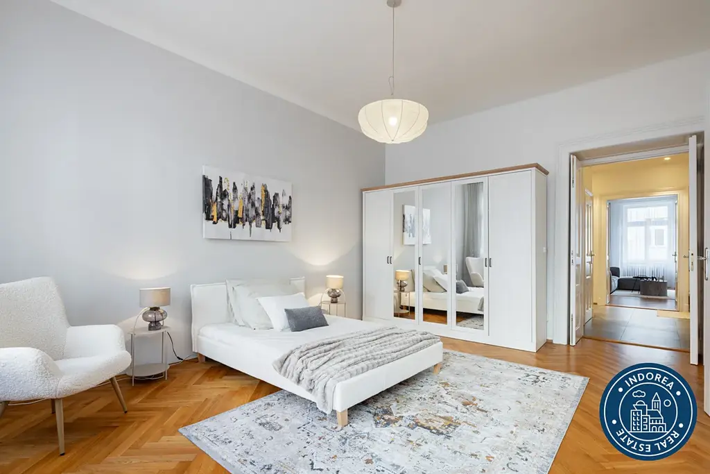 Nabízíme k pronájmu výjimečný byt o dispozici 3+kk a celkové ploše 116 m², situovaný ve 3. nadzemním podlaží udržovaného činžovního domu s novým výtahem v prestižní ulici Lesnická na Smíchově. Jedná se o stylové bydlení s atmosférou staré Prahy, doplněné moderním komfortem a nádhernými výhledy na Vltavu, Jiráskův most i Tančící dům.